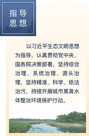 • 以習近平生態文明思想為指導,認真貫徹黨中央、國務院決策部署,堅持綜合治理、系統治理、源頭治理,堅持精準、科學、依法治污,持續開展城市黑臭水體整治環境保護行動。