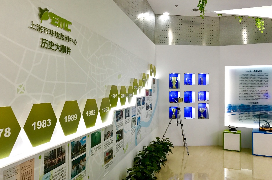 環境科普監測展廳展示內容包括監測中心35年歷程,監測領域介紹,建站初期使用的監測儀器,中心獲得的榮譽等。長三角區域空氣質量預測預報中心則展示長三角區域空氣質量預測預報系統。