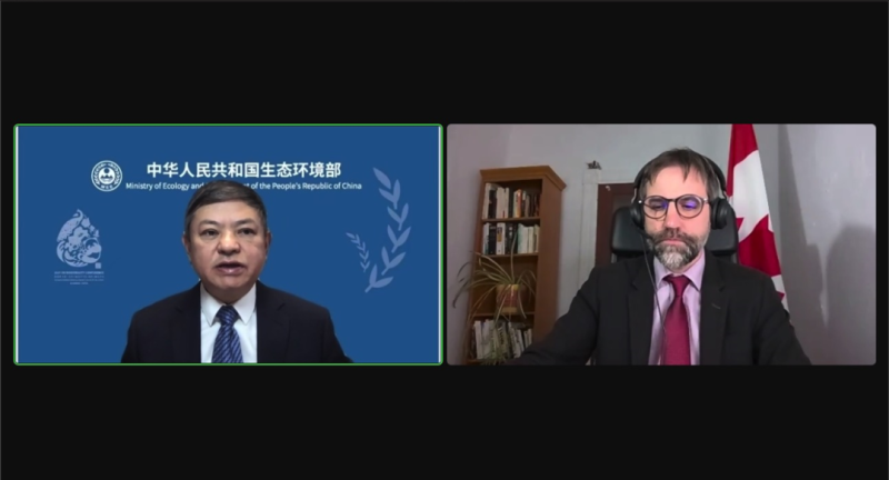 《生物多樣性公約》締約方大會第十五次會議主席、生態環境部部長黃潤秋視頻會見加拿大環境與氣候變化部長