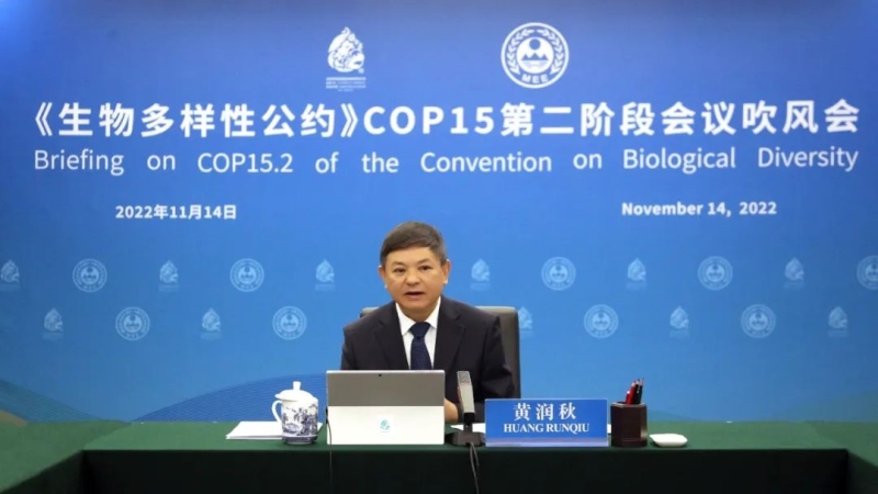 11月14日,《生物多樣性公約》第十五次締約方大會(COP15)第二階段會議吹風會以視頻方式舉行。COP15主席、生態環境部部長黃潤秋出席會議并致辭。