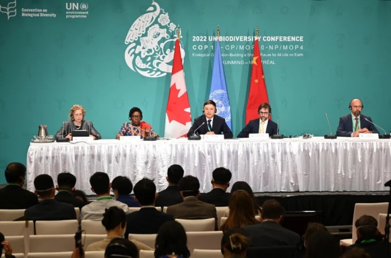 當地時間12月6日,《生物多樣性公約》第十五次締約方大會(COP15)第二階段會議在加拿大蒙特利爾舉行首場新聞發布會。COP15主席、生態環境部部長黃潤秋,加拿大環境與氣候變化部長吉爾博,聯合國副秘書長兼聯合國環境規劃署執行主任安德森,聯合國《生物多樣性公約》(以下簡稱《公約》)秘書處執行秘書穆雷瑪出席發布會,并共同回答了記者提問。