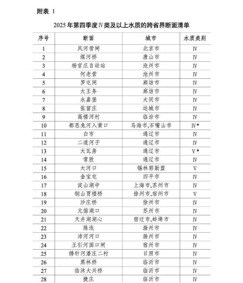 生態環境部今日公布了2025年第四季度(10—12月)和1—12月全國地表水環境質量狀況。