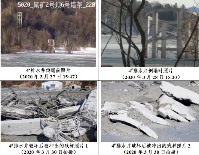 經(jīng)現(xiàn)場調(diào)查取證和檢測分析論證,鹿鳴礦業(yè)尾礦庫4#排水井拱板和井架工程質(zhì)量達(dá)不到設(shè)計(jì)和施工規(guī)范要求,拱板發(fā)生結(jié)構(gòu)破壞導(dǎo)致尾礦泄漏,井架在不平衡尾礦、水和冰塊的壓力作用下倒塌,進(jìn)而導(dǎo)致尾礦經(jīng)排水隧洞大量泄漏,是造成事件發(fā)生的直接原因。