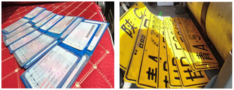 經調查,2名貨車司機為獲取非法利益,與檢驗機構法人和站長協商,通過懸掛虛假車牌、打印虛假車架號等方式,為外省重型車進行“替檢”,同時通過1名“黃牛”在網絡平臺,在全國發布廣告招攬生意。涉案車輛達到800余輛,涉案金額200余萬元。蘭州市公安局現場抓獲6名嫌疑人,查獲涉案車輛3輛、號牌25副、車架號模具4塊、放大號牌模具5副,“電子打碼機”1套。