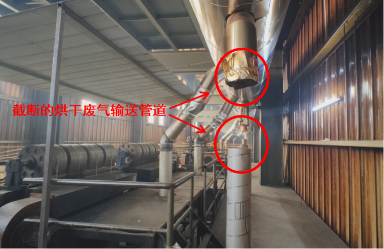 圖2 2024年5月15日,督察組現場督察發現,湖州長城異形線材有限公司擅自將6根烘干廢氣輸送管道截斷,廢氣未經處理直排