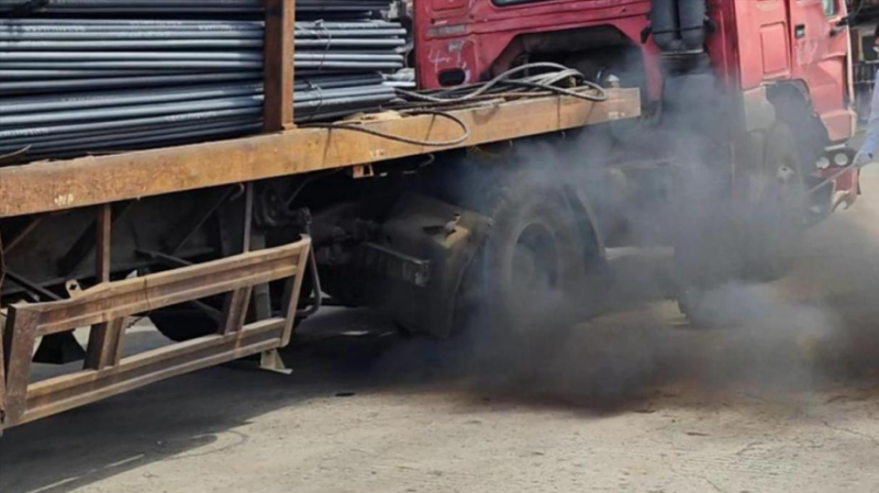 圖1 2024年5月19日,督察組現(xiàn)場督察發(fā)現(xiàn),寶山區(qū)佰隆碼頭使用報(bào)廢柴油貨車進(jìn)行內(nèi)部運(yùn)輸,排氣口黑煙滾滾