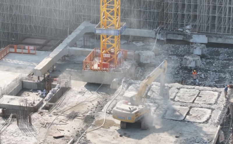圖2 2024年3月22日,督察組暗查發(fā)現(xiàn),滬蘇湖鐵路松江南站項(xiàng)目破碎拆除地面未采取防塵措施