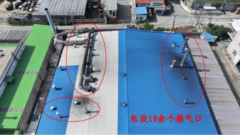 圖3 2024年5月21日,督察組現(xiàn)場督察發(fā)現(xiàn),晶欣汽車配件有限公司私設(shè)10余個排放口偷排廢氣