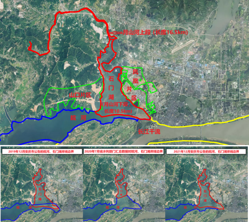 月山河是皖河支流,是長江二級支流,根據第一次全國水利普查成果和安徽省有關部門2019年印發的《關于加快推進河湖管理范圍劃定工作的通知》《安徽省河湖管理范圍和水利工程管理與保護范圍劃定工作技術指南(試行)》,月山河長度為27公里,石門湖應納入月山河統一劃定管理范圍外緣邊界線。督察發現,安慶市以石門湖是獨立湖泊為由,在湖泊岸線一公里范圍內建設山口片區和化工項目,加劇了區域生態環境風險。長江保護法實施以來,安慶市還在長江干流岸線一公里范圍內新建化工項目,風險隱患突出。