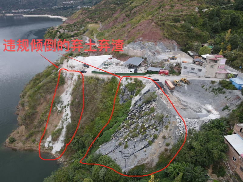 圖1 2024年10月25日,督察組現場督察發現,雅安市漢源縣富泉鎮中海村大渡河自然岸坡被違規傾倒約1700立方米洞渣、廢漿和建筑垃圾