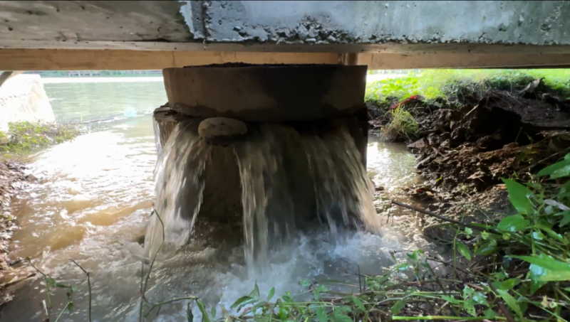 圖4 2024年10月20日,督察組現場督察發現,廣元南河國家濕地公園內生活污水直排