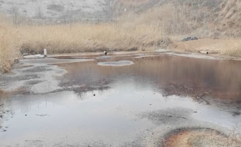 圖2 2025年2月22日,督察組暗查發現,長治市沁縣利民垃圾處理中心滲濾液未經處理溢流至外環境,形成污染坑塘。